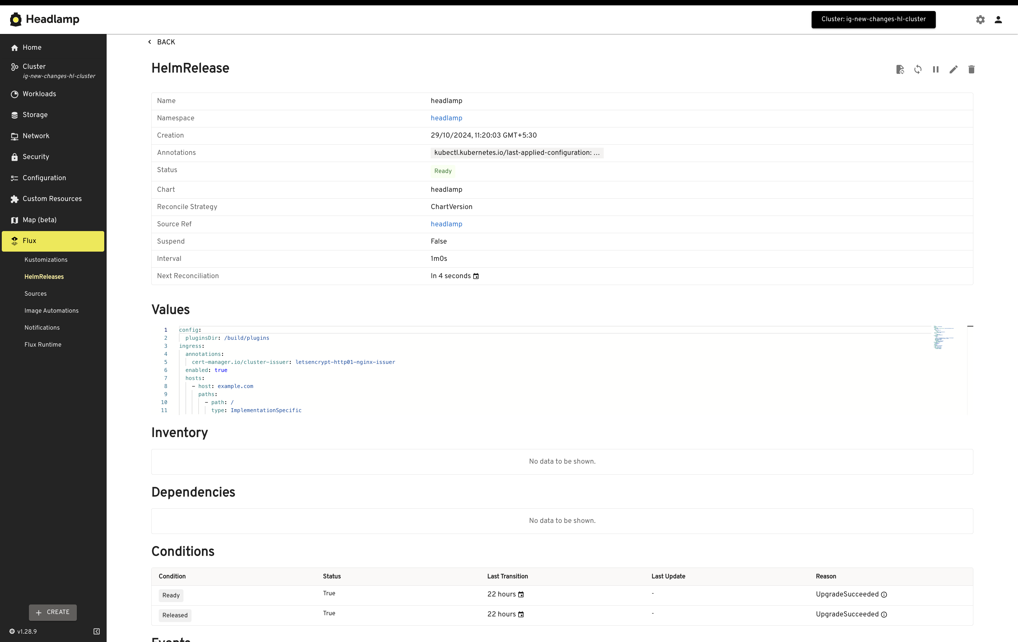| headlamp/flux-plugin | Headlamp is a Kubernetes UI extensible through plugins. The Flux plugin for Headlamp allows to visualize Flux and perform operations common operations like quick sync’ing, suspending/resuming, and others. See the plugin README for installation instructions. |